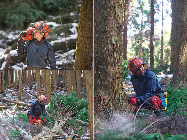 悠木産業には先輩社員が10人以上いたので、それぞれの先輩のいいところを学びながら、「自分に合う伐り方」を見つけていった。同社で12年研鑽を重ね、その後独立し、現在に至る。