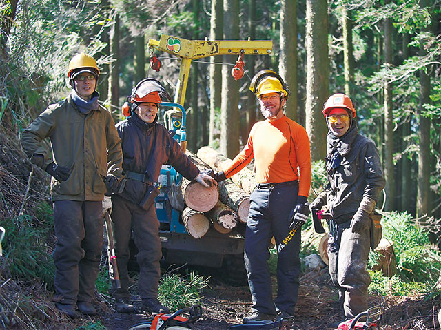 移住後、村の方の紹介で『NPO法人産山守り人の会』のことを知り、森林作業に加わることになりました。もともと、本国アメリカでは、大学で森林学を専攻し、ユタ州でのフォレストレンジャー(森林警備隊)の経験もあります。「自然の中で働けるのは気持ちが良いです。そして、木は、地球のとても大事な資源のうちのひとつですので、林業に関われることは嬉しいですし、誇りにも思います。また、『山の神の日』など、とても山に敬意を示している日本の文化にも感動しました。」