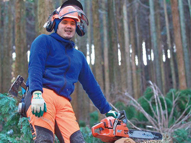 「林業のどんなところが好きですか?」の問いに「と言われても、”林業“そのものが好きなんです」とまっすぐ答える児玉さん。「まだ2年目だからということもあるでしょうが、山の中での作業は何をしても面白いんです。」ひとつひとつの作業が「なるほどなぁ!」ということばかり。