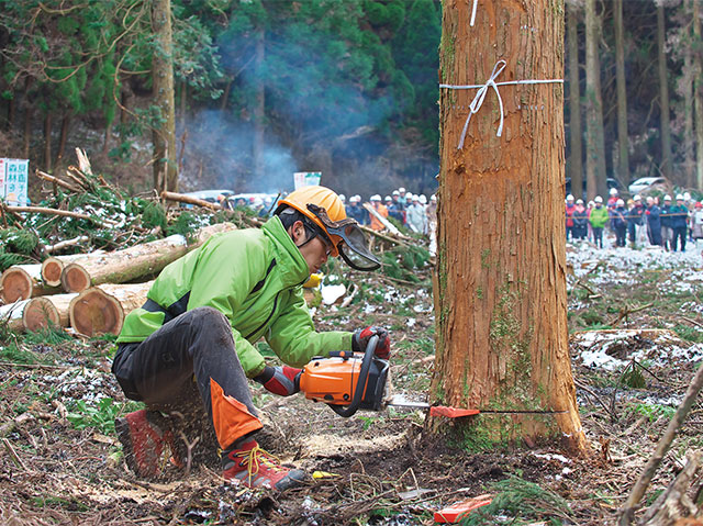 その後、植林のアルバイトで出会った山の親方や、地元の林業事業体にも熱くアプローチし、ひとつひとつ仕事をもらい、そのひとつひとつに一生懸命に取り組んでいるうちに、いただける仕事が少しずつ増えていった。現場でいちばん大事にしていることは「きれいな仕事」。林業は木をどれだけ出したかでお金がもらえるので、極端な話、いい木(値段がつく木)だけ伐ってお金だけもらい、残りの伐りにくい場所にある木などは知らんふり、というような現場(10年前にそういう作業をしたな、ということが現場を見ればわかるそうです)も中にはある。でも「自分が入った山はきれいにする」。作業を始める前は、山はとても暗く、重く大変な感じがする。それでも、暗い森を間伐し終えた時の達成感は、本当に、やった者だけに与えられる喜びだと思う。それがやりがいでもある。